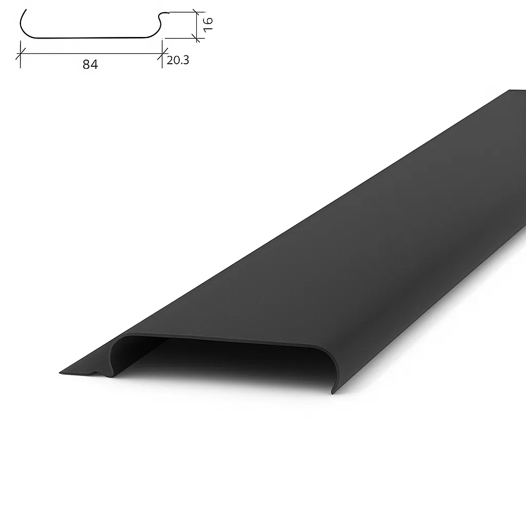A84AC черный — алюминиевая рейка для потолков с шириной 84 мм, шагом установки 100 мм и закрытым типом монтажа. Эффектный чёрный цвет придаёт потолку глубину и строгость, подчёркивая архитектурные элементы интерьера. Идеально подходит для современных офисов, шоурумов, салонов и конференц-залов.