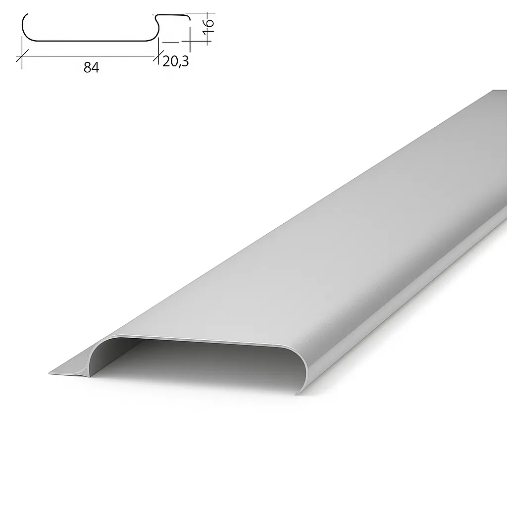 A84AC металлик — потолочная алюминиевая рейка шириной 84 мм с шагом 100 мм. Обладает эстетикой закрытых стыков, что создаёт ровную и чистую потолочную поверхность. Цвет "металлик" придаёт потолку сдержанный технологичный стиль. Используется в офисах, административных зданиях, ТЦ и производственных помещениях.